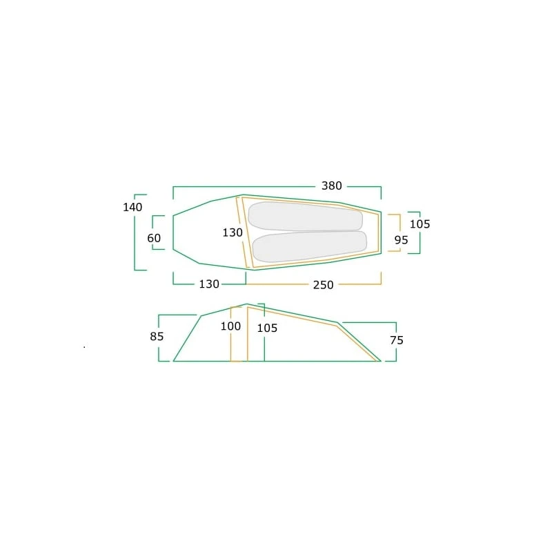 - Innertelt: Nylon 6 20D Rip-Stop BR & WR